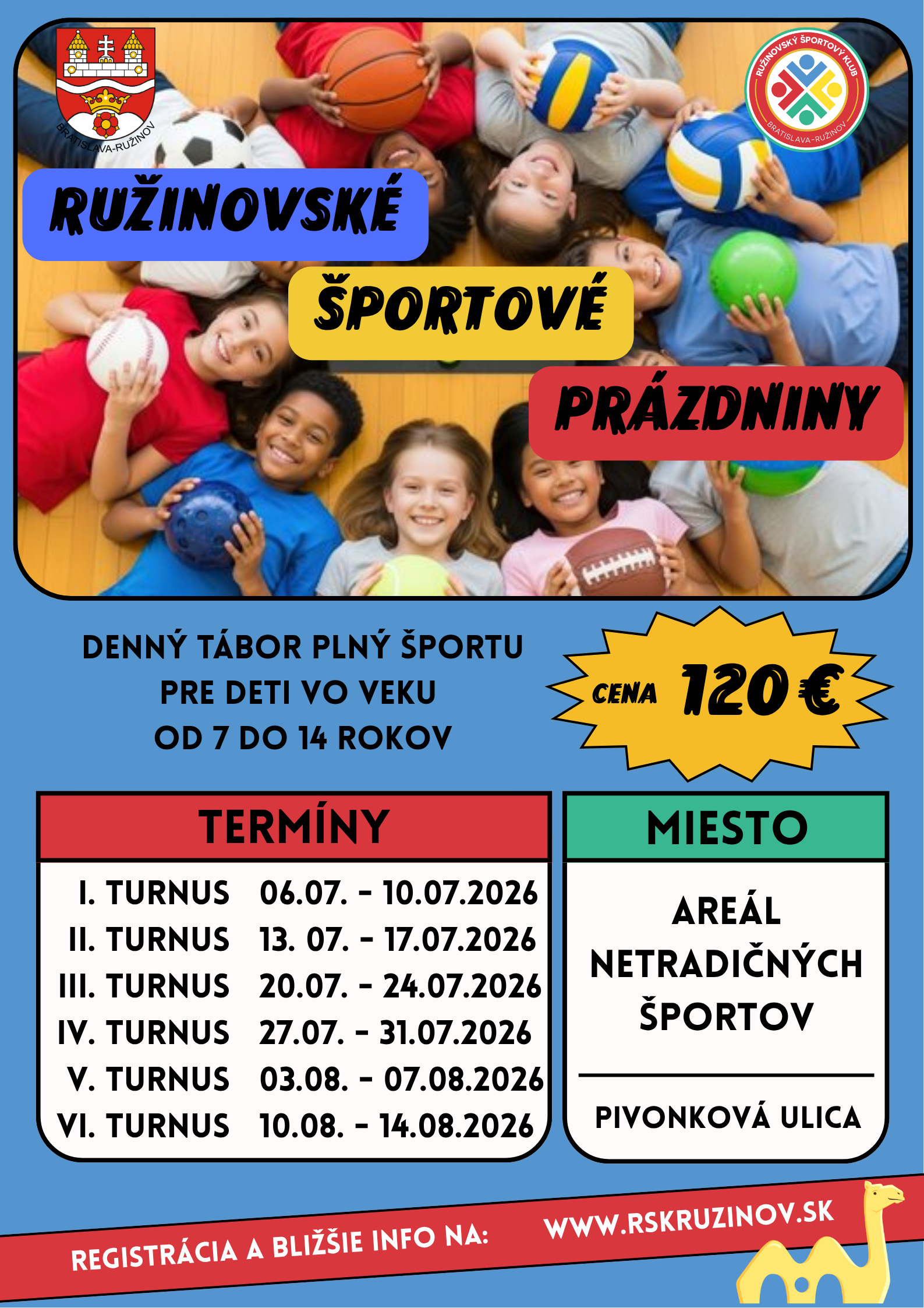 Kapacita denného tábora je OBMEDZENÁ (45 detí / turnus).